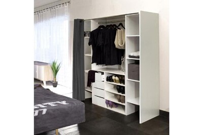 Sa taille permet de ranger un grand nombre daffaire dissimulable grâce aux rideaux fournis avec le meuble. Dressing - kit amenagement de placard combit kit dressing 2 colonne 2 penderies et 6 tiroirs - blanc - l 117 x p 48 x h 200 cm. Dressing avec rideau.