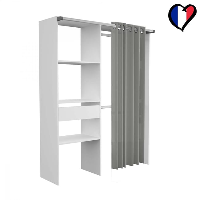 Paris Dressing Blanc Avec Rideau 4 Etageres 2 Penderies Et 1 Tiroir 143 X 48 X 182 Cm Leroy Merlin