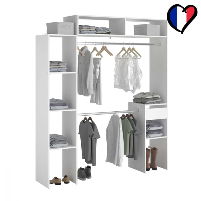 Elysee Dressing Blanc Avec 6 Etageres 2 Tiroirs Et 2 Penderies 180 X 40 X 180 Cm Leroy Merlin