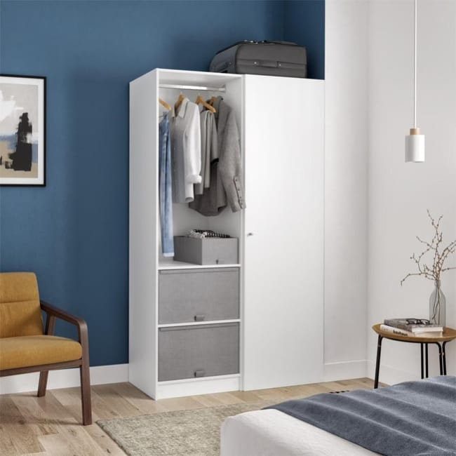 Elysee Dressing Blanc Avec Rideau Gris Et 2 Penderies 6 Etageres Et 2 Tiroirs Leroy Merlin